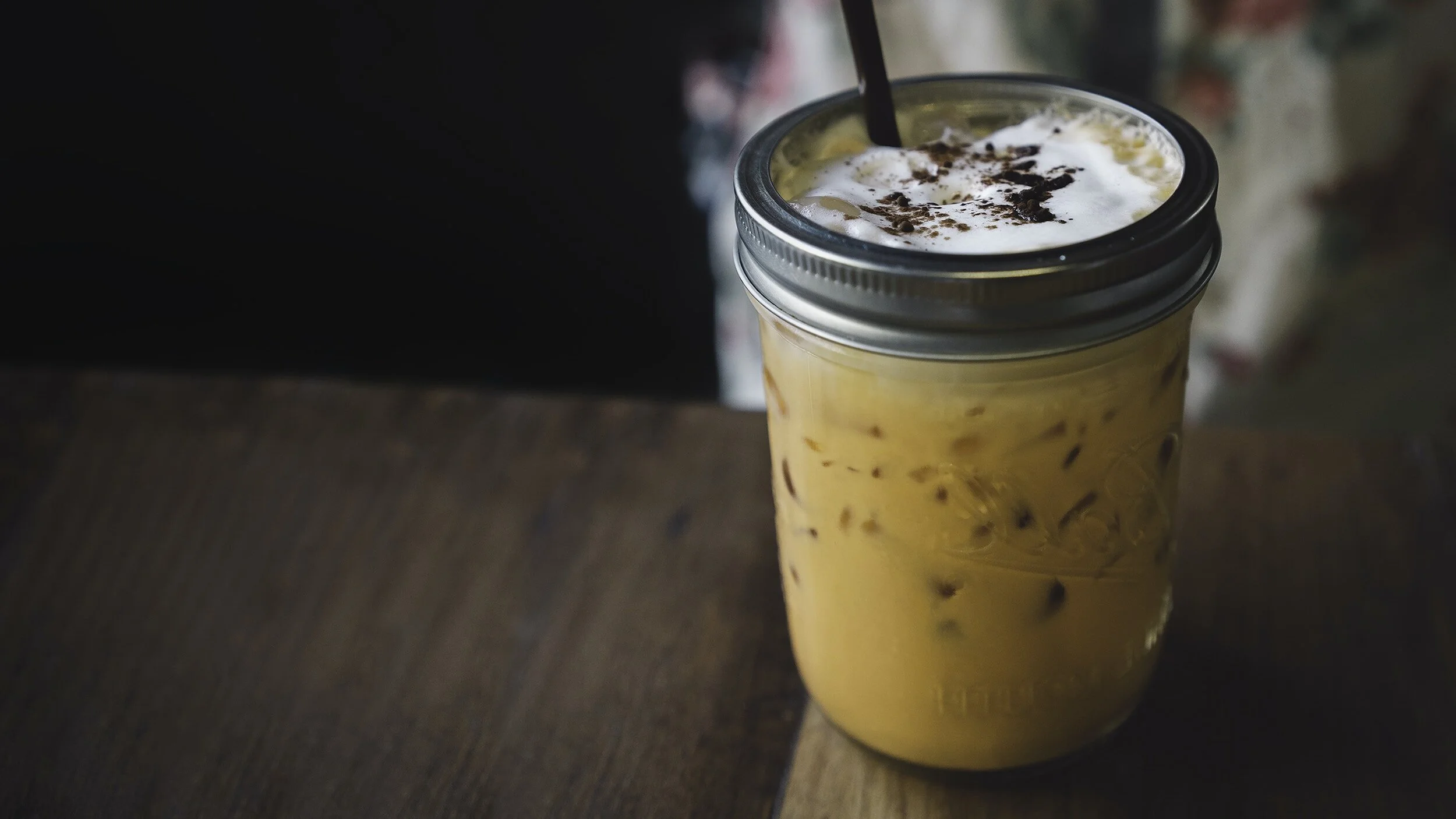 Vanilla ice cream float in Thai Ice Tea or Thai Ice Coffee